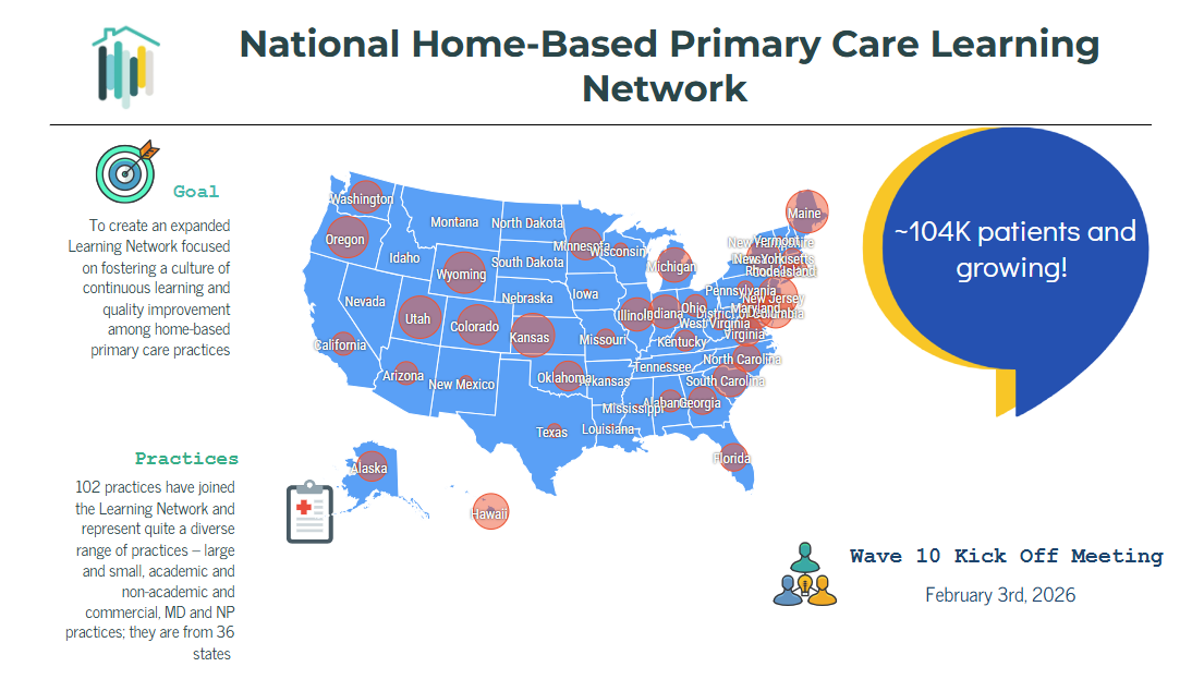 If so, we invite you to apply to join The National Home-Based Primary Care (HBPC) Learning Network, an experiential quality improvement intensive learning collaborative. In this round of the Learning Network, we will add up to 15 HBPC practices from across the country to join the 102 Learning Network practices who have been a part of this community.